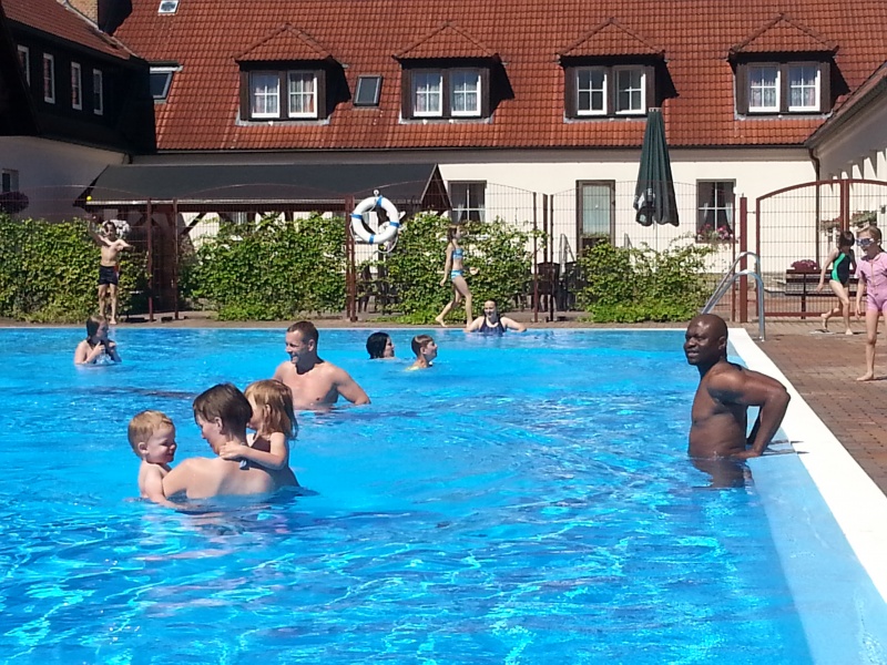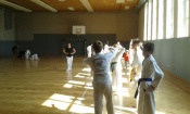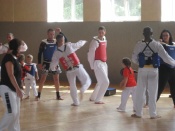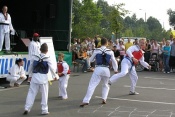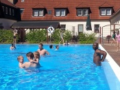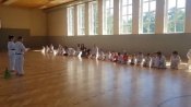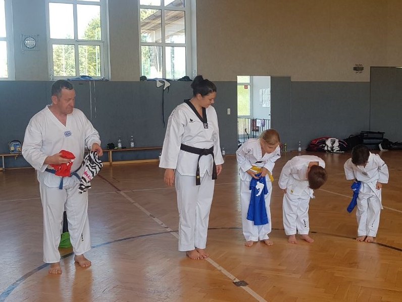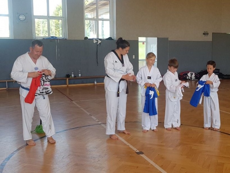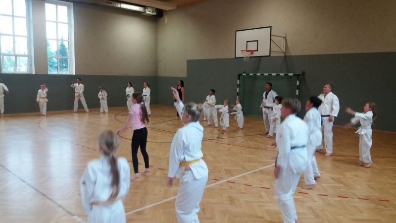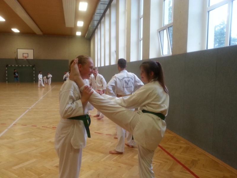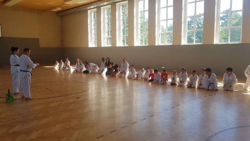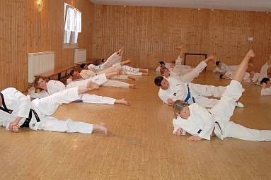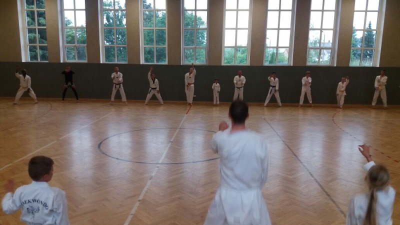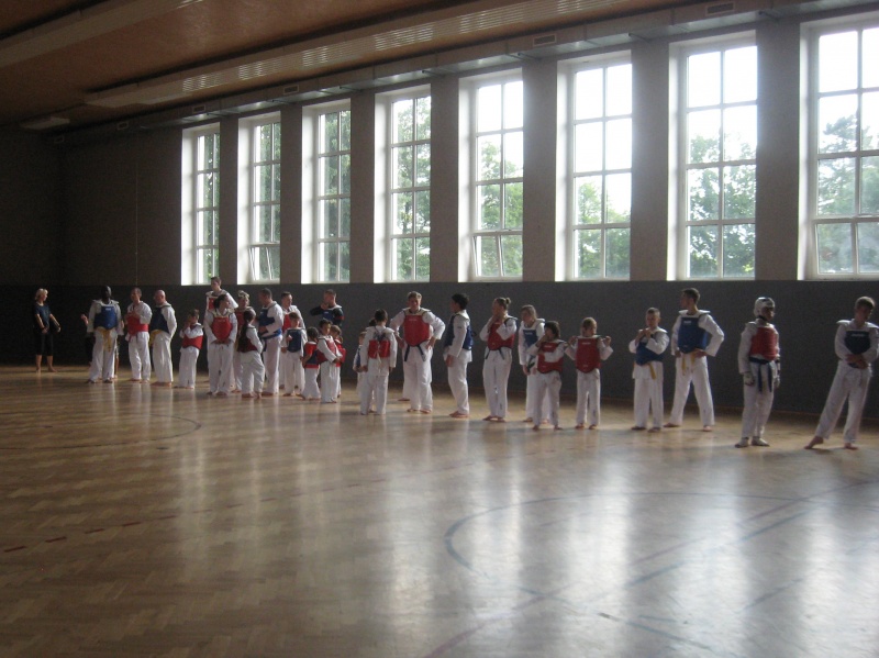 In jedem Jahr ist die Durchführung des Trainingslagers ein Höhepunkt im Vereinsleben. So fuhren wir vom 09. bis zum 11. Juni 2017 wieder in die Landessportschule Werdau. Etwas verspätet starteten am Freitag Nachmittag, 39 Personen mit dem Bus nach Werdau. Vor Ort angekommen bezogen wir die Zimmer und bis zur Eröffnung reisten die weiteren Teilnehmer an, so dass wir mit 51 Personen das Trainingslager eröffneten. Unsere Trainer Claudia Leuthäußer, ihr Helfer Göran Pahl sowie Ali Reza Hamzehian waren ebenfalls vor Ort, Während der ersten lockeren Einheit kamen bereits alle teilnehmenden Sportler sehr ins Schwitzen. Nach dem Abendbrot wollten Janine Günther und Victoria Krautwald eigentlich eine Wasserschlacht durchführen, die aber auf Grund der abendlichen Temperaturen auf den nächsten Mittag verlegt wurde. So spielte man Volley- und Fußball. Am nächsten Tag wurden zu Beginn des Trainings die Kleinsten besonders begrüßt. Sie zeigten ihre bereits erworbenen Fähigkeiten und erhielten als Erinnerung ein T-Shirt. In den nachfolgenden Trainingseinheiten wurden Techniken des Taekwondo`s geübt. Am Nachmittag wurde die Sportgruppe geteilt, so dass die etwas älteren Sportler Grundlagen des Krav Maga kennen lernen konnten und die jüngeren Sportler mit Ali eine Trainingseinheit absolvierten. Da wir noch nicht genug von den sportlichen Aktivitäten hatten, veranstalteten Janine & Victoria am Abend einen Staffellauf, der sehr viel Spaß & Freude bereitete. Nach einer kurzen Trainingseinheit am Sonntag verließen wir zur Mittagzeit sehr entspannt und zufrieden, der eine oder andere völlig kaputt von den sportlichen Aktivitäten, die Landessportschule in Werdau. Zum Abschluss erhielten Caroline Peper, Arvin Hamzehian und Nicolai Schmidt ein besonderes Lob von unserer Claudia und erhielten ebenfalls als Erinnerung ein T-Shirt. Wir möchten uns bei Claudia, Ali und Göran für das vielfältige und tolle Training bedanken. Es hat sehr viel Spaß gemacht und natürlich Lust auf mehr. Natürlich gilt unser Dank auch Janine & Victoria für die geplanten und durchgeführten Aktivitäten. Für alle, die vielleicht in diesem Jahr nicht mit dabei waren und es sich für das nächste Jahr fest vorgenommen haben, hier der Termin des nächsten Jahres. Wir fahren vom 22. Juni bis zum 24. Juni 2018 wieder nach Werdau. | |