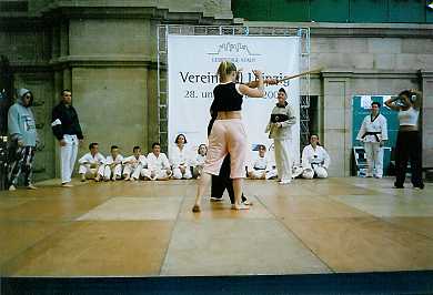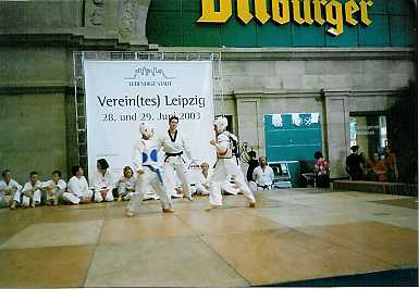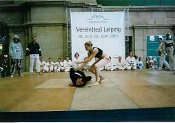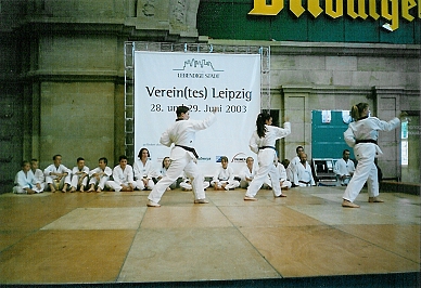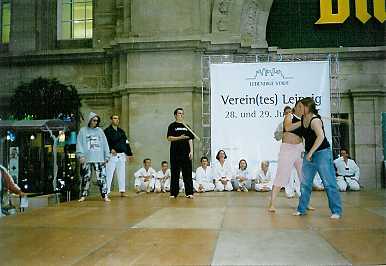 Vorführung zur Aktion "Vereintes Leipzig" auf dem Hauptbahnhof 2003